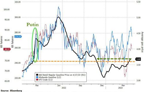 > _“With oil prices touching their highest level of 2023 at nearly $83 per barrel, the national average price of gasoline has continued to inch higher, with 45 of the nation’s 50 states seeing prices rise over the last week. **While the rising price of oil is likely the largest factor in rising gas prices, seasonal impacts continue to also exert pressure on prices,**” GasBuddy’s head of petroleum analysis at GasBuddy said in a note on Monday._