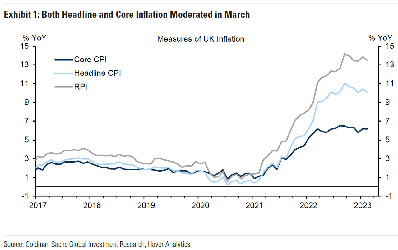 UK inflation has not been falling as quickly as comparable indicators in many European countries which saw lower energy prices reflected in the March data, but headline rates for the UK are expected to drop significantly next month.