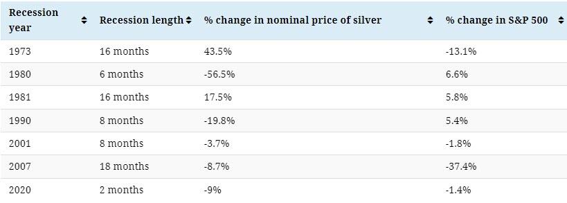 **But has silver helped investors weather recessionary storms in the past?**