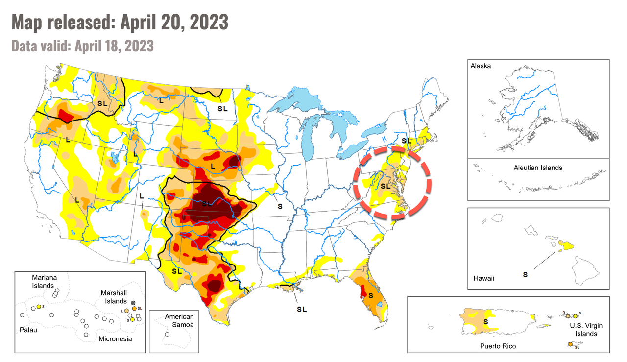 Rain is welcomed for the mid-Alantic area, where a moderate drought has developed.