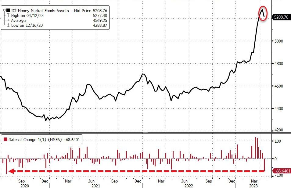 In a big surprise, **this week saw a $68 billion OUTFLOW from Money Market funds** \- the largest since July 2020 (after $380 billion of INFLOWS over the previous five weeks)...