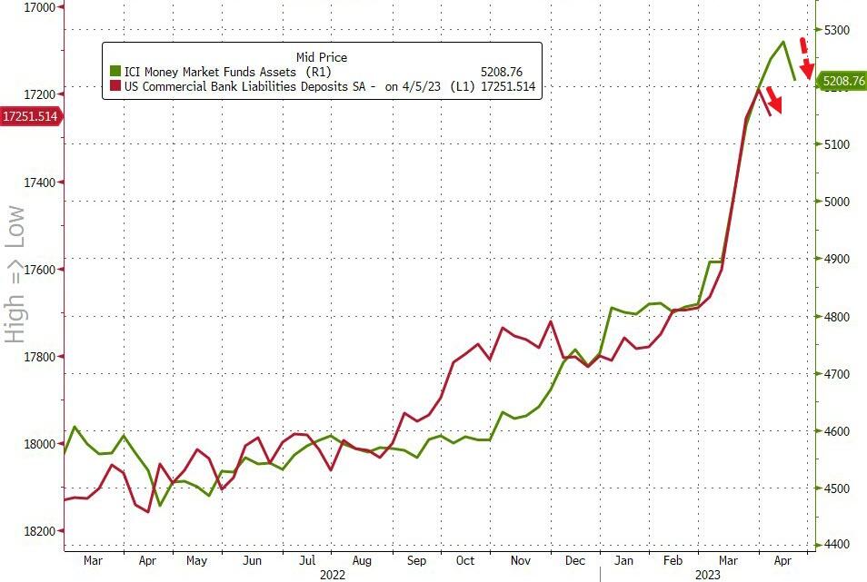 That pulled assets from their $5.277 trillion record high and suggests last week's deposit INFLOWS may be about to accelerate - good news for banks?
