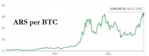 On a side note, as Argentina' official peso rate has crashed 99% against the dollar since the start of its rolling crisis in 2018, the price of Bitcoin just hit a record high in the South American nation...