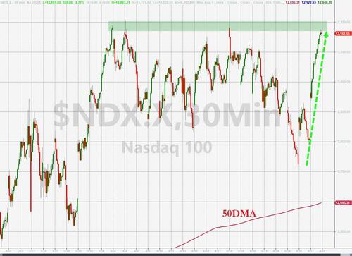Finally, while Amazon stock has badly underperformed the rest of the GAMMA names, heading into today's earnings the stock gained and was on track to notch its biggest two-day jump since February. So far this year, the shares are up about 31%.