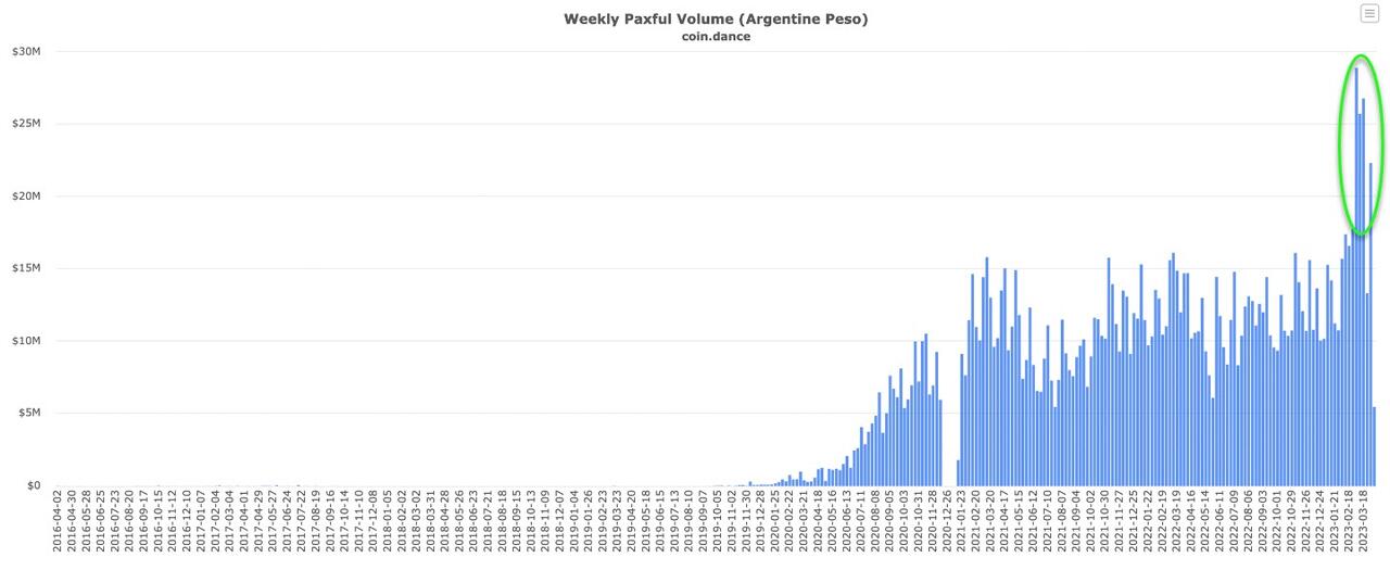 _Bitcoin weekly volume in Argentina. Source: Paxful/CoinDance_
