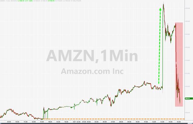 **Update (6:00pm)**: Everything was going ok, with AMZN stock soaring as much as 12% and then suddenly AMZN stock erased all gains and turned red during the company's analyst earnings call (the media call held an hour earlier went by ok).