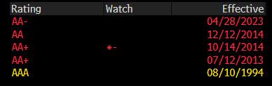 Fitch had rated France AAA until July 2013, when it downgraded it to AA+, and then to AA in Dec 2014.