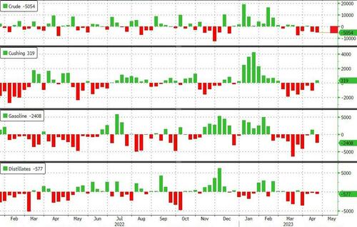 For the 3rd week in a row, crude stocks saw a draw-down (slightly bigger than expected)...