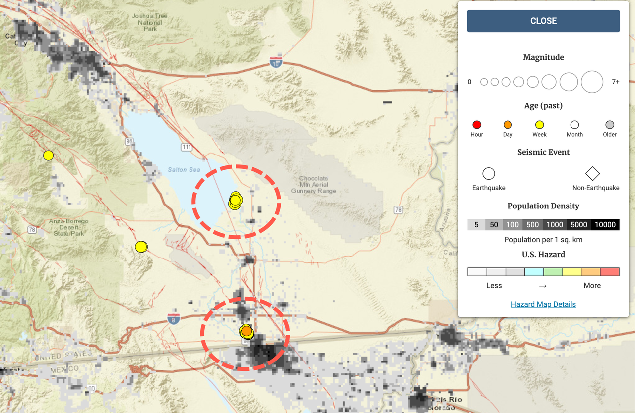 According to a USGS intensity map, the quakes were felt in Palm Desert, Indio, El Centro, and Mexicali.