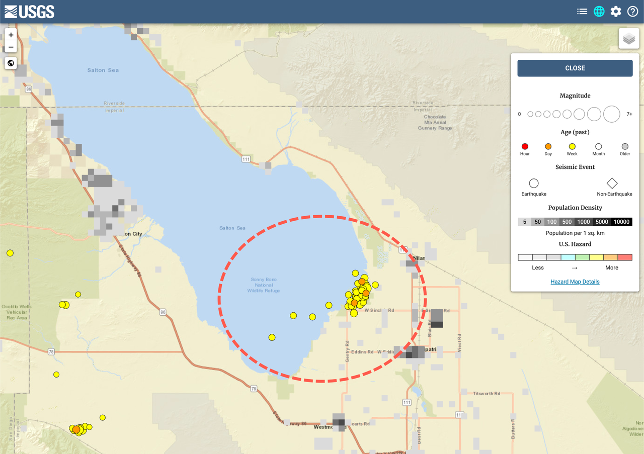 Then on Sunday morning, a 4.5 magnitude quake struck 4 miles west-southwest of Niland and just east of the Salton Sea, USGS data showed. Dozens of tremors were reported as well.