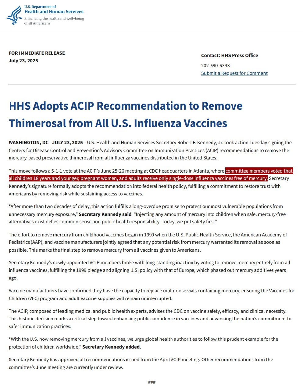 💉🇺🇸 EUA REMOVEM TIMEROSAL À BASE DE MERCÚRIO DAS VACINAS CONTRA GRIPE