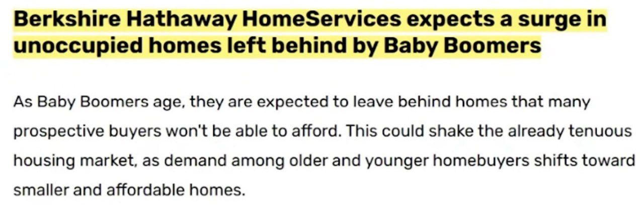 Warren Buffett alerta que entre 13,1 e 14,6 milhões de boomers deixarão a casa própria entre 2026 e 2036, podendo causar queda nos preços pela maior oferta.
