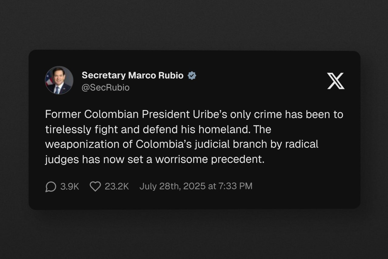 🇺🇸❌🇨🇴⚖️ MARCO RUBIO CONDENA DECISÃO CONTRA ÁLVARO URIBE
