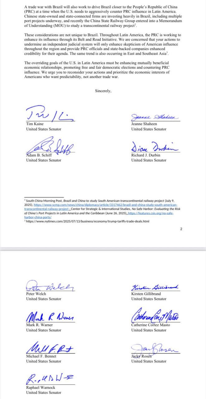 Faltam 6 dias para a tarifa de 50% sobre produtos brasileiros entrar em vigor. Senadores democratas dos EUA criticam a medida, afirmando que prejudica o comércio e pode fortalecer a influência da China na América Latina.