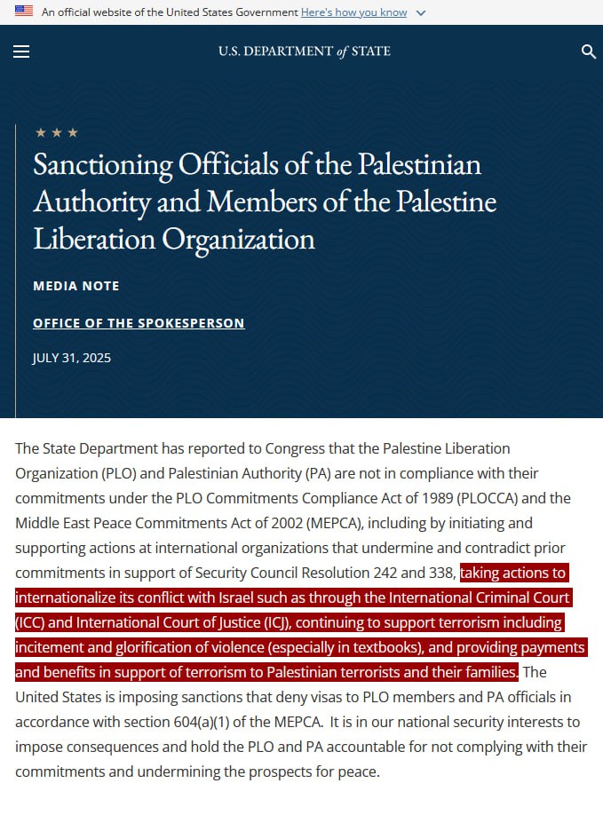 🇺🇸🛑 EUA IMPEDEM VISTOS E APLICAM SANÇÕES A LÍDERES PALESTINOS