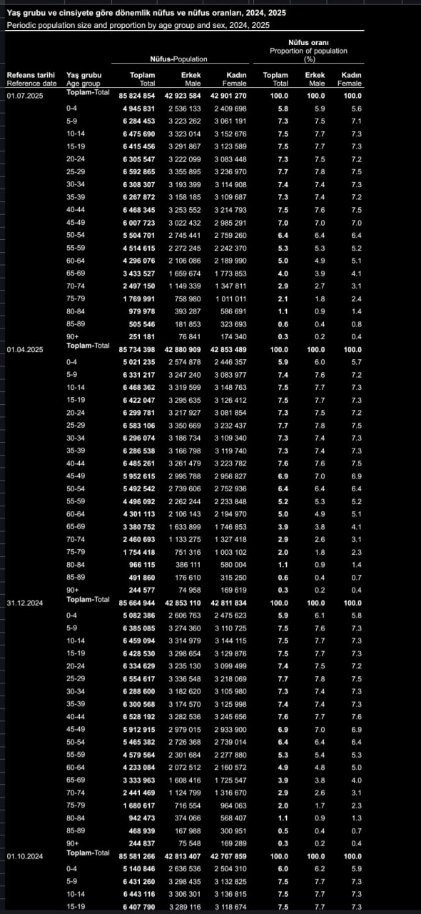 A taxa de fertilidade da Turquia deve ser de 1,34 filhos por mulher em 2025, com cerca de 850 mil nascimentos. A queda no número de crianças de 0 a 4 anos segue em ritmo acelerado.