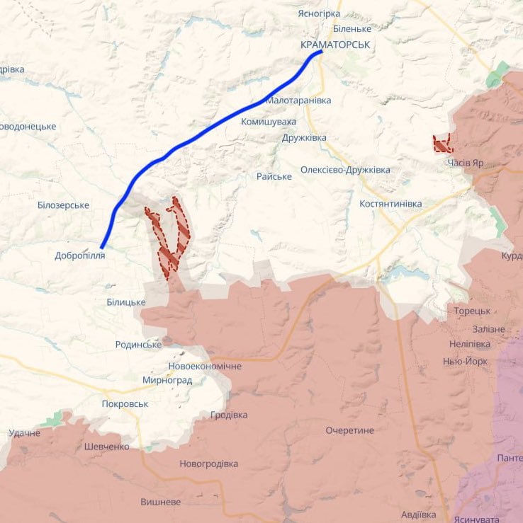 O 1º Corpo foi enviado de Dobropolye a Kramatorsk para conter avanço russo. Cidades como Konstantinovka e Druzhkovka correm risco de cerco. Movimentação visa reforçar defesa na região.