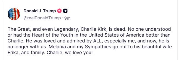 📰🇺🇸 PRESIDENTE TRUMP ANUNCIA MORTE DE CHARLIE KIRK