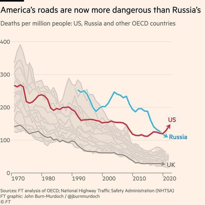 🚗📉🇺🇸 EUA SUPERAM RÚSSIA EM MORTES NO TRÂNSITO