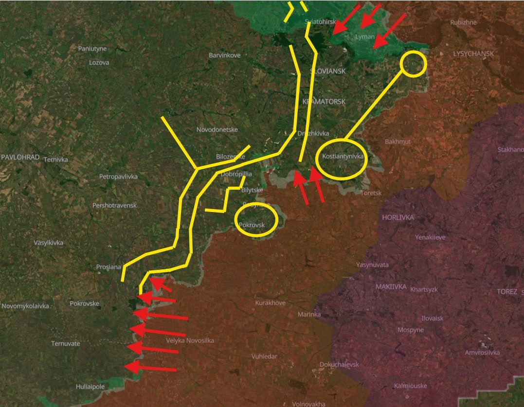 Foram mapeados 1.500 ataques aéreos russos entre Pokrovsk e Konstantinovka em 3 semanas, superando o total mensal anterior. Cerca de 40% dos ataques ocorrem em Pokrovsk, preparando ofensiva antes das chuvas de outono.