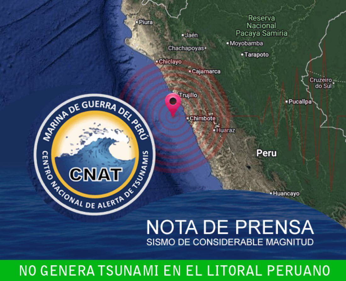 Terremoto de magnitude 6.0 atinge Chimbote, Peru. A Marinha peruana descartou alerta de tsunami. Tremor foi sentido em várias regiões costeiras.