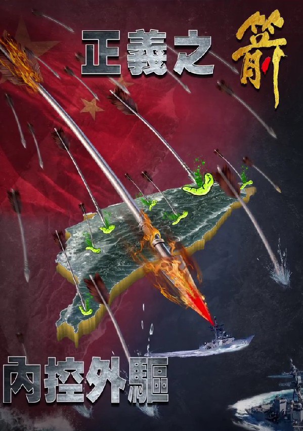 O Comando Oriental do Exército de Libertação Popular da China divulgou um pôster para os exercícios militares intitulado "Flechas da Justiça: Controle Interno, Determinação Externa". O pôster destaca o poder de fogo e ataques precisos, mostrando flechas atingindo alvos principais e esmagando a "independência".