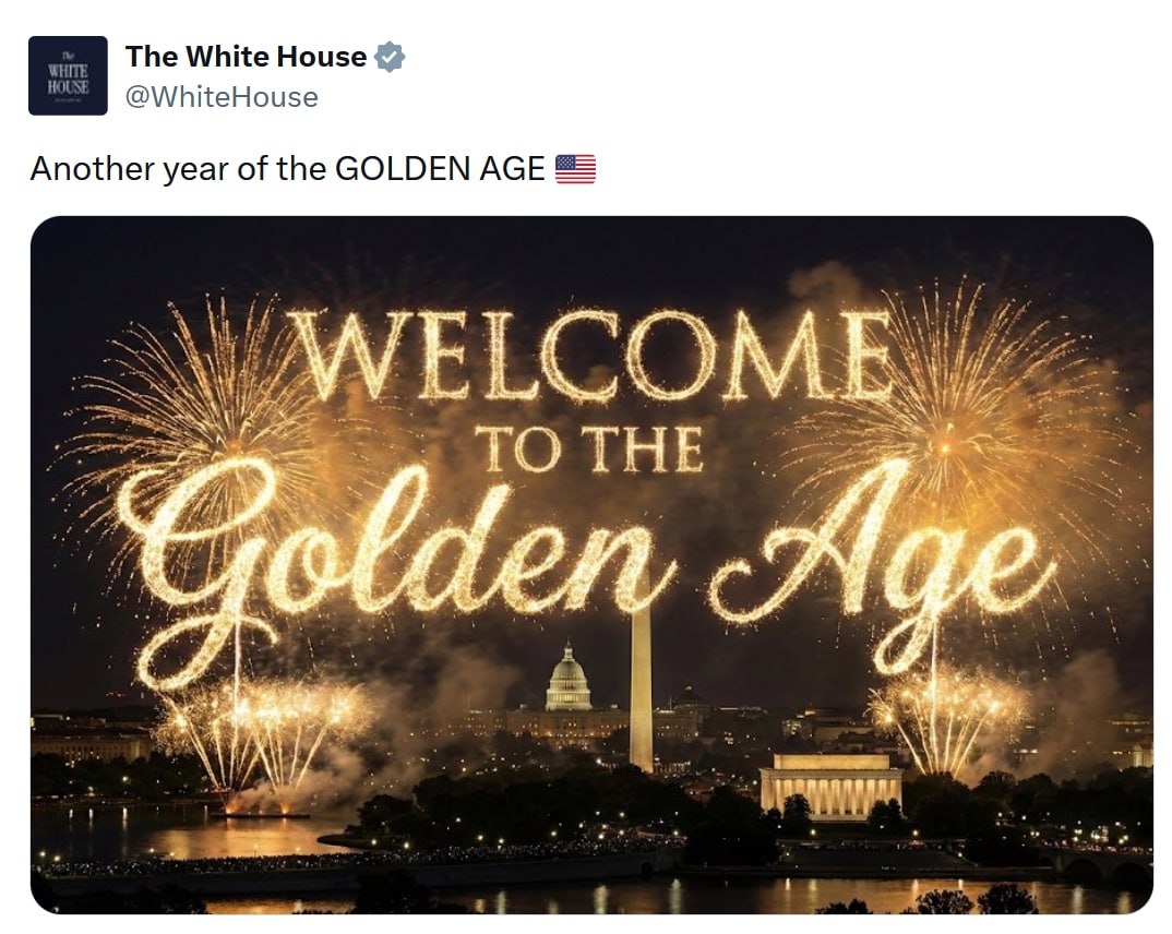 A Casa Branca publica mensagem de Ano Novo celebrando a chegada da Era Dourada.