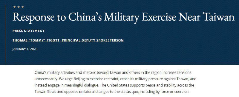 🚨🇺🇸🇨🇳 DEPARTAMENTO DE ESTADO DOS EUA RESPONDE A EXERCÍCIOS MILITARES DA CHINA PRÓXIMO A TAIWAN