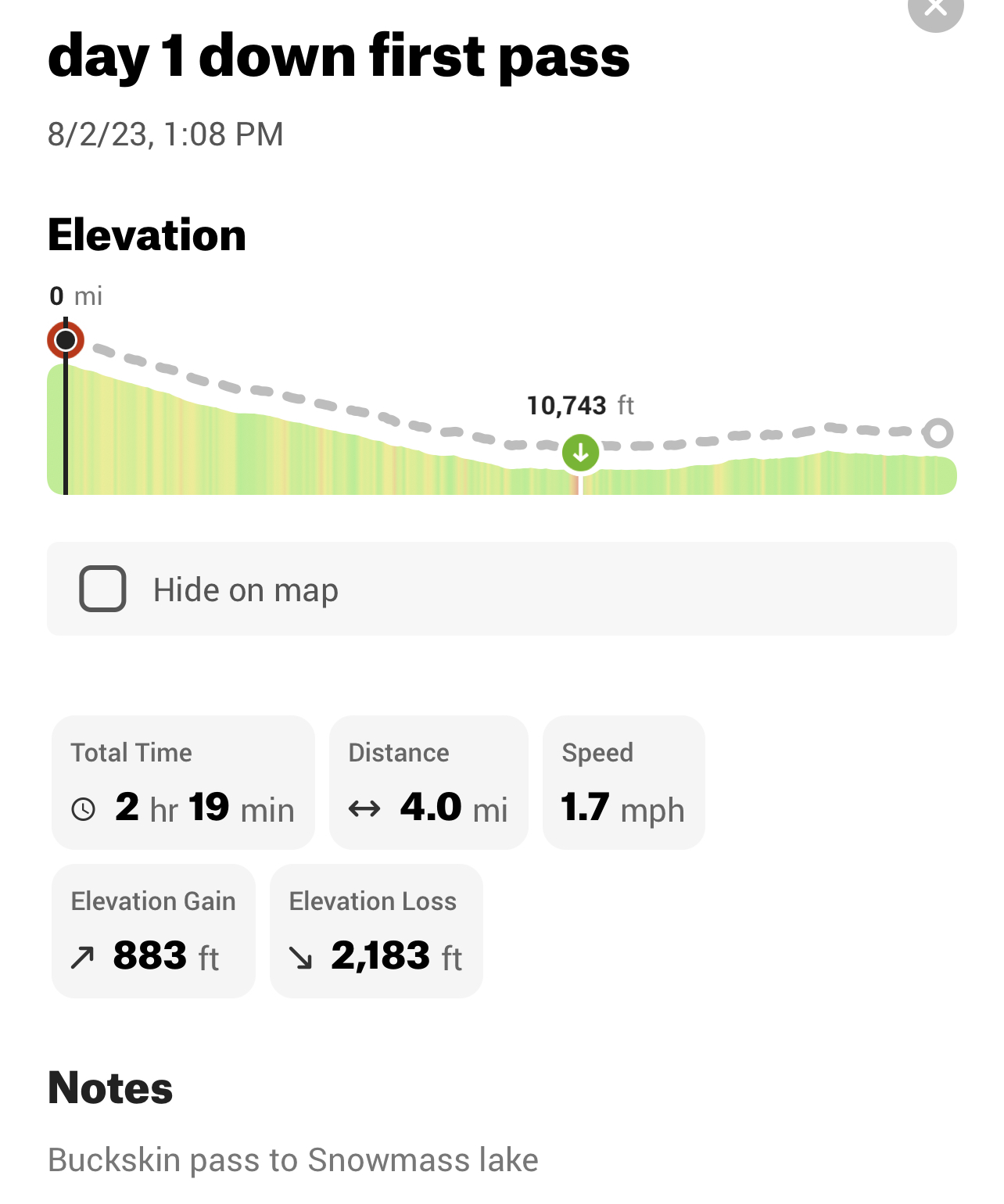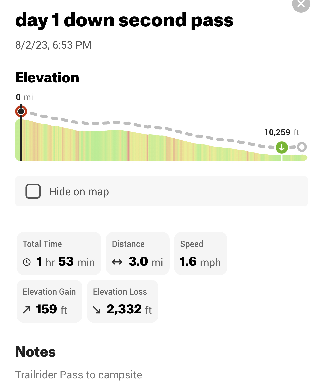 This was a 13 mile day with a 55l pack weighing a bit over 35lbs, I didn’t start until 8am, and took a relaxing hour long lunch.