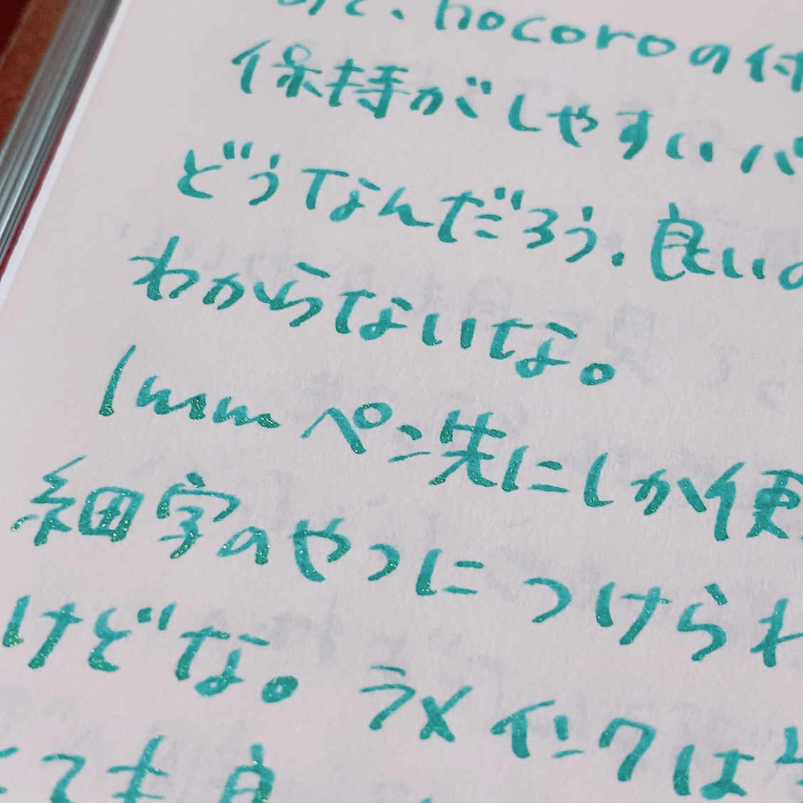 nostr:npub1g093ghv7z0vzjf2qwshq9wav2098fae2q30z7407s008wj9yzugq23r294 そんでもって試し書き。指とノートの側面を緑に染めながら……ヤッチマッタ