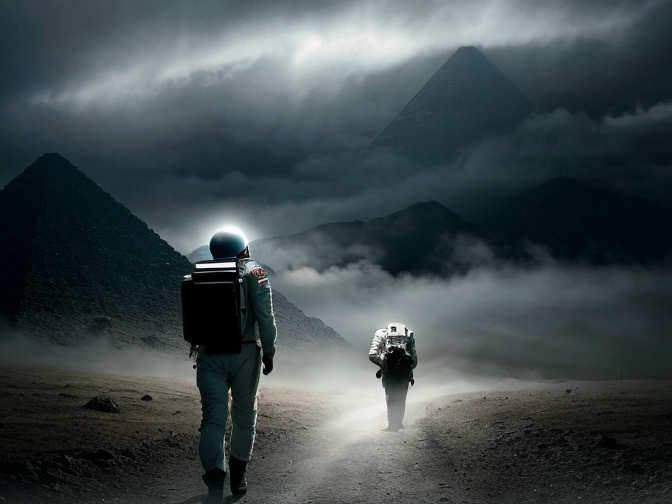You and your partner have been walkinga long the path for what seems like ages. On the horizon it pokes through the clouds, the tip of a triangle. "Looks like we've got a lot to report back to Houston", they say. "We'll we're certainly not in Kansas anymore," you replied.