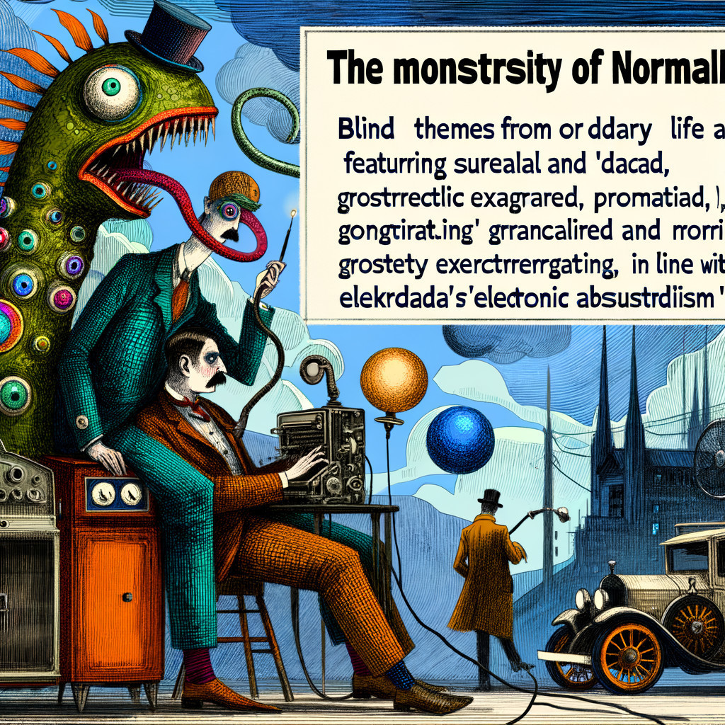 Prompt: The Monstrosity of Normality, surrealism, dada, elektrodada, weird, whimsical, dark