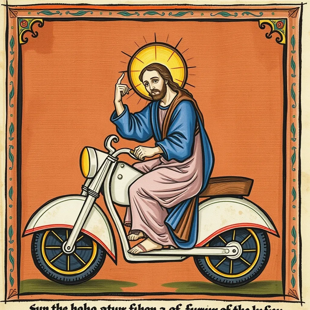 Jesus Christ on a motorbike, medieval book illumination