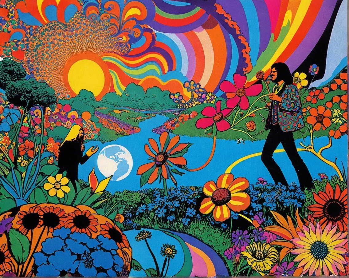 Weird, cute, psychedelic machine hallucinations, hippie style