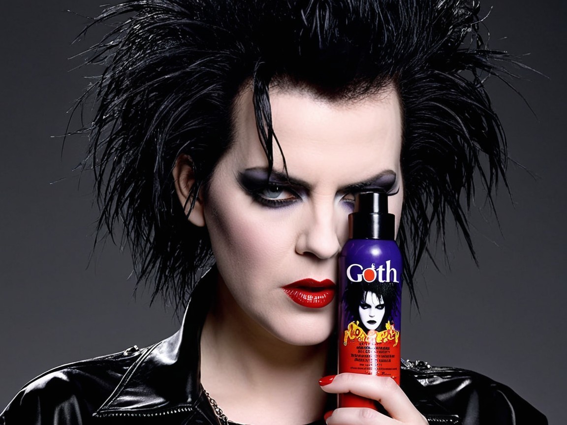 Goth Juice, the most powerful hairspray in the world. Made from the tears of Robert Smith.
