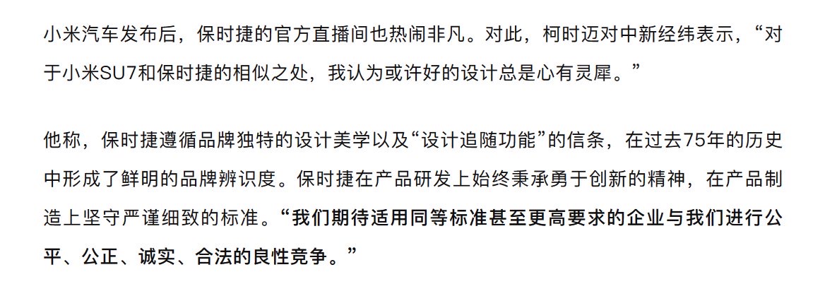 保时捷中国总裁首度回应小米SU7外观相似点,称“或许好的设计总是心有灵犀。” #科技圈大小事 https://t.co/qRUFhivtxL
