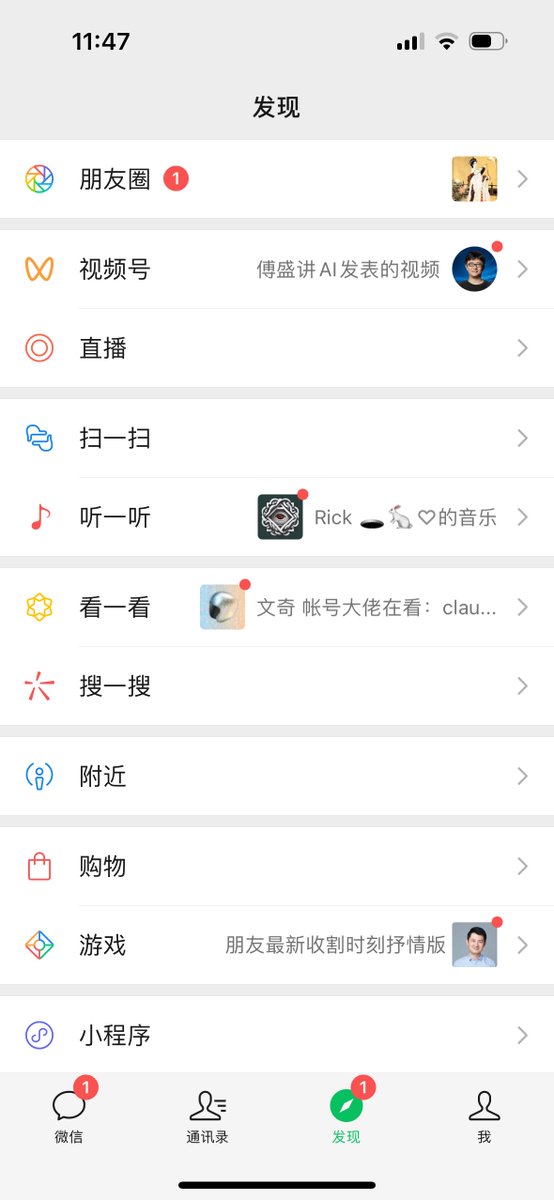 看着这个发现页,不确定小龙总还记不记得他说过要保持微信克制极简的那个约定 #大产品小细节 https://t.co/aoAju3eZuC