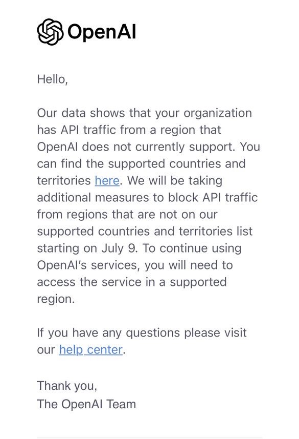 多名开发者收到了OpenAI的警告信