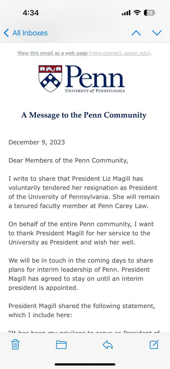 1.批评和要求辞职:三位校长对于是否将针对犹太人的“灭绝”呼声视为校园骚扰的回答,引发了两党的愤怒和呼吁他们辞职的声音。众议员伊莉斯·斯特凡尼克(Elise Stefanik)甚至要求解雇这三位校长 。最近进展,UPenn的校长已经辞职。