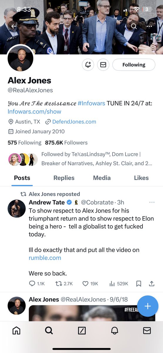昨天马斯克在推特上,发起调查问卷,再次让广大网友决定,“是否应该恢复Alex Jones推特账户?”,将近200万人投票,70%同意恢复,结果今天Alex Jones 账号时隔5年,正式恢复!