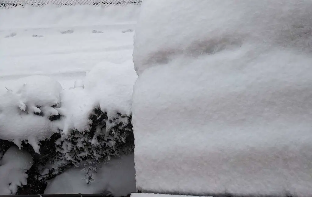 頑張って雪かきしたのにまためっちゃ降ってきて一瞬で積もってる、悲しい