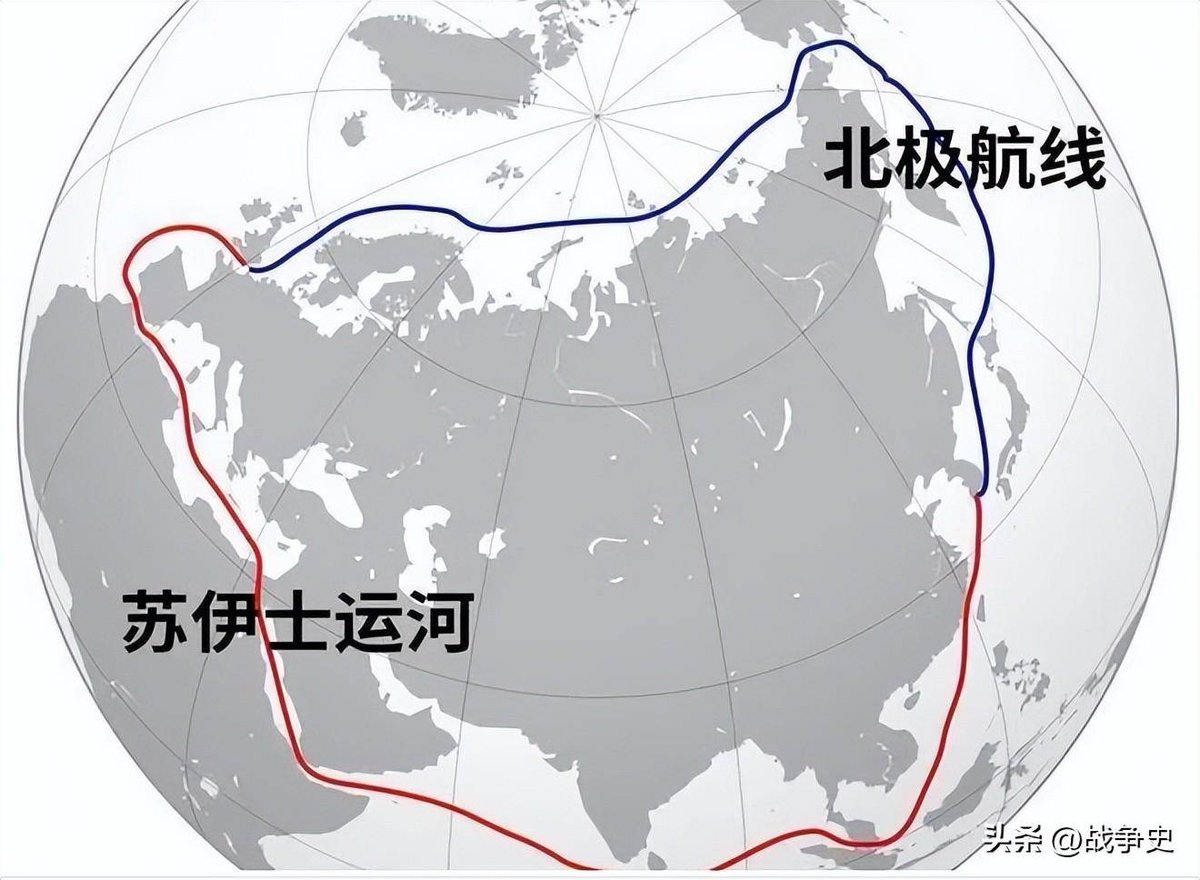 北极航线比苏伊士运河航线节约5000公里,比巴拿马运河少7天航程。 https://t.co/EmneWz70Vy