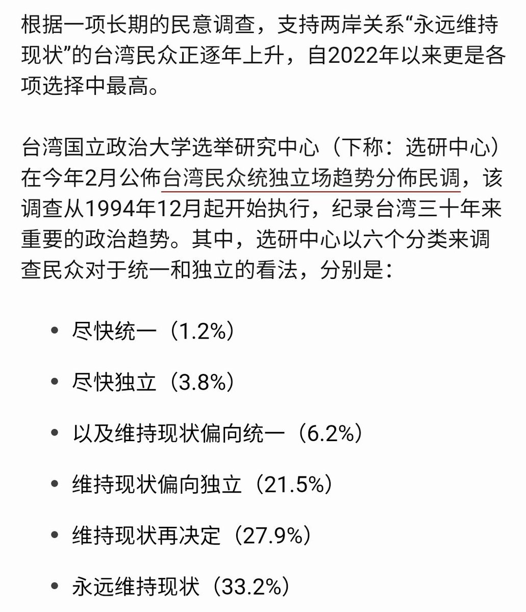 BBC: 民调台湾人95%希望维持现状。 https://t.co/OshOsdsmOt