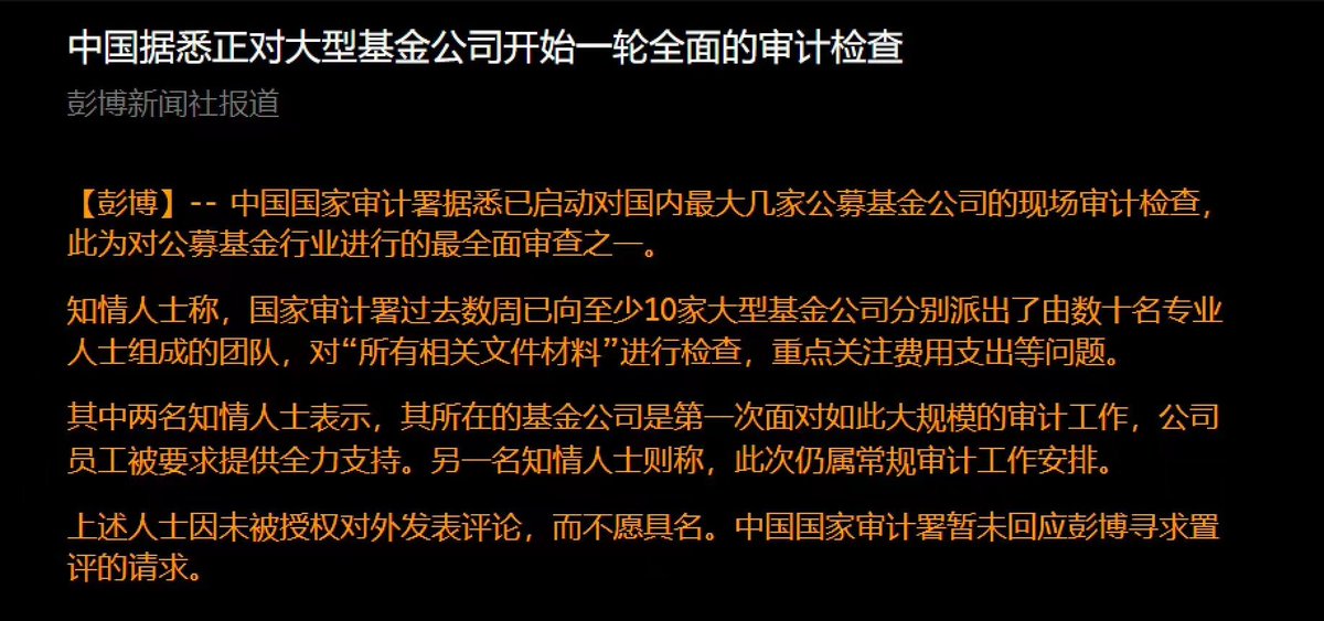 12:27 ★★【部分公募基金人士证实:行业内300万以上年薪或被追溯退还】近日有市场传言称,公募基金2019年以后年薪300万以上被要求全退,“马上要出文件,估计一批人要卖房子退钱了”。对此,记者向多家公募基金人士求证。有部分公募人士告诉记者,对年薪300万以上进行追溯、要求全退的消息是真的,“据说已经离职的人也要退,但可能不是强制性的,只是通知要退款,追溯时间和范围也不太清楚”。也有其他头部公募人士表示,目前并未听说该消息。(每日经济新闻)