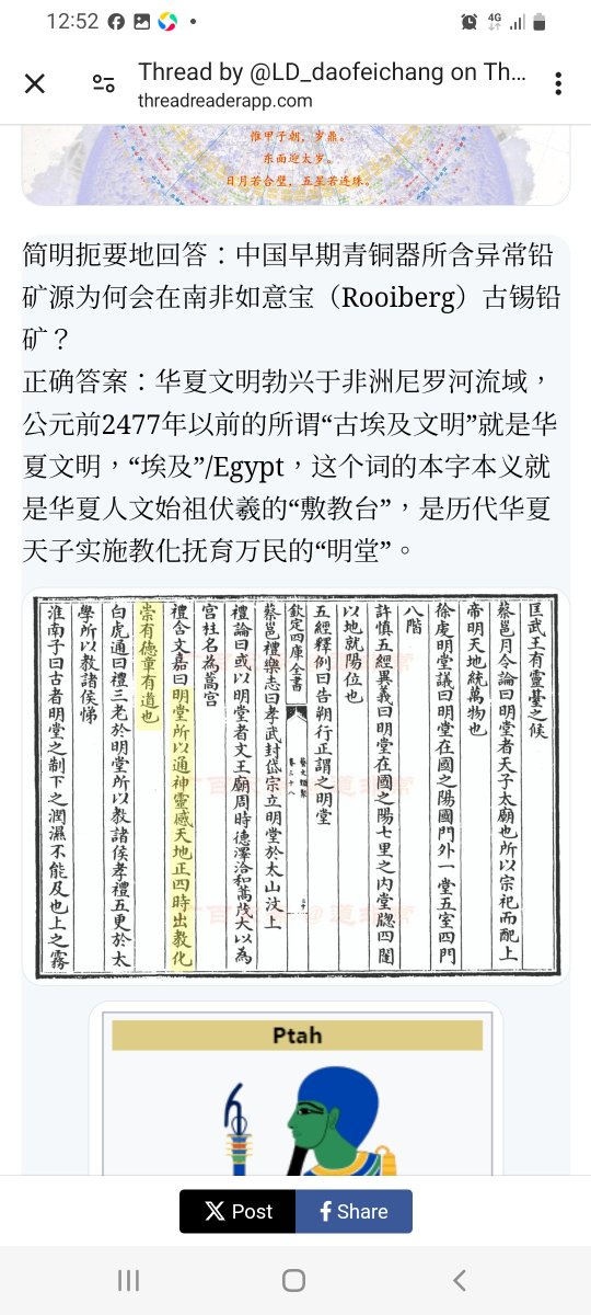 正确答案:华夏文明勃兴于非洲尼罗河流域,公元前2477年以前的所谓“古埃及文明”就是华夏文明,“埃及”/Egypt,这个词的本字本义就是华夏人文始祖伏羲的“敷教台”,是历代华夏天子实施教化抚育万民的“明堂”。 https://t.co/AbofHPtRT7