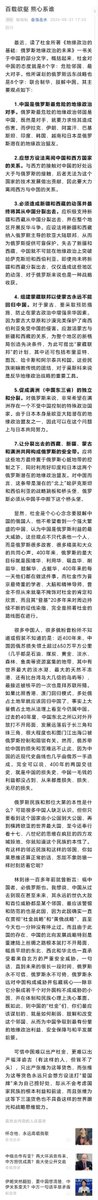 俄罗斯有一种大国博弈哲学,是从近代史传承至今,基本上对中国的态度就是肢解、利用、抽血。这是俄罗斯普京的主要顾问的主张,他的书毫不掩饰。