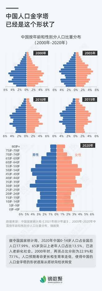 我们从图上可以看到,任何一个间隔5年的人口塔钟上面,75至80以上都是短柱。