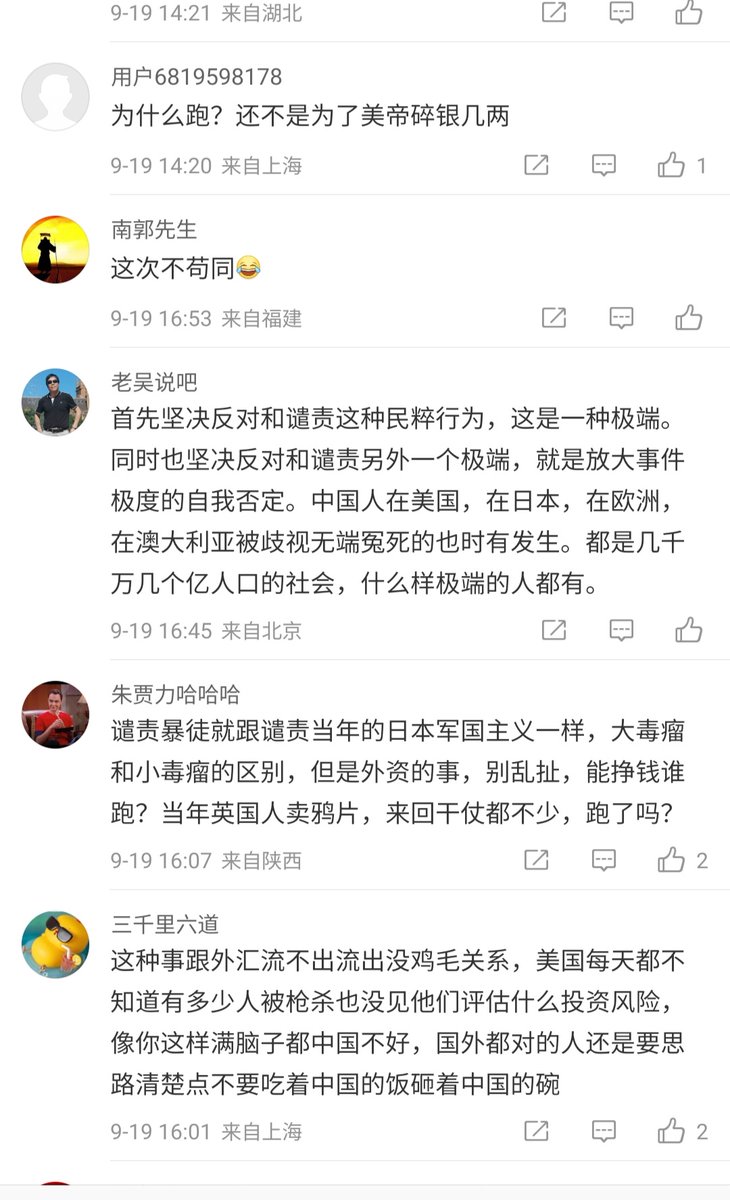 我请问一下各位:哪国都有治安不好的犯罪,这种种族指向性明确的仇恨才是令人恐惧的。而投资者更明白极端民族主义背后的涵义。