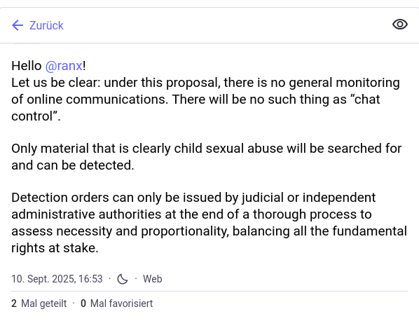🇩🇪EU-Kommission jetzt ernsthaft: „Es gibt keine #Chatkontrolle.“