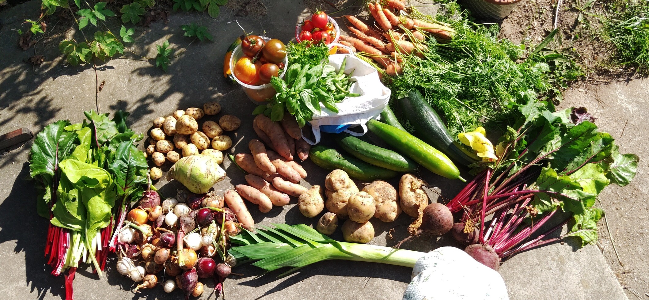 Deine Ernte ist jedenfalls sehr beachtlich. Gurken sind bei mir wegen Mehltau schon durch. Kartoffeln bau ich auf meiner viel zu kleinen Fläche gar nicht an, weil die dann viel zu nah an den Tomaten wären. Rote Beeten kommen jetzt langsam.